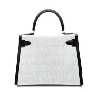 Hermes Kelly 28 Toile H Black/Ecru Palladium Hardware