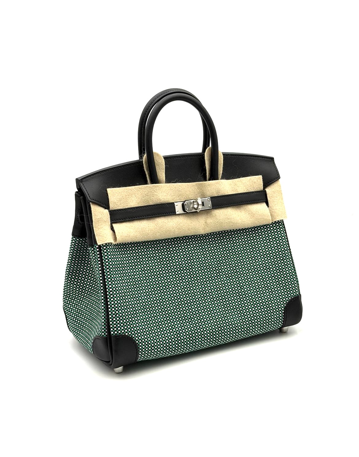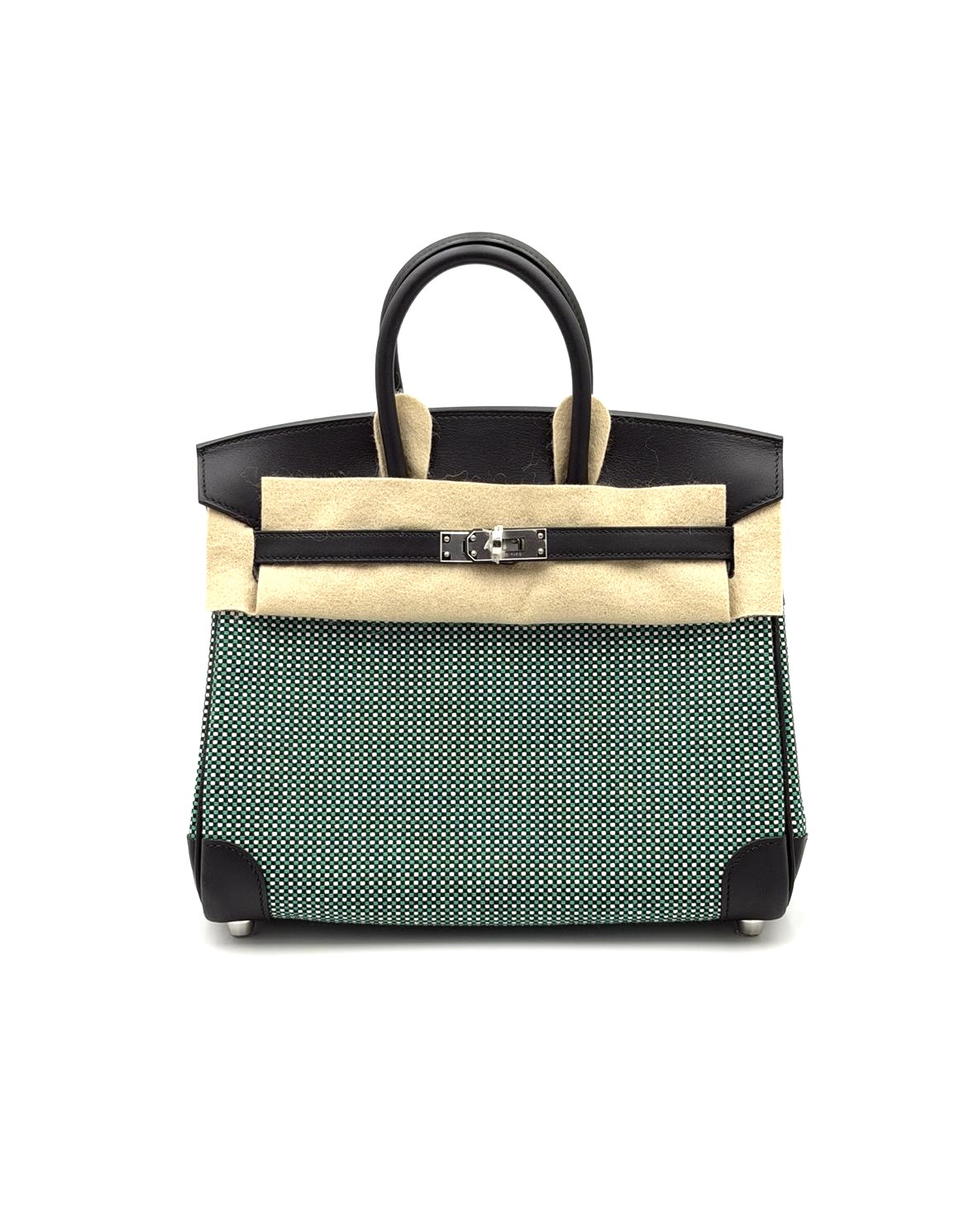 The Hermes Birkin 25 Quadrille Noir/ Blanc/Menthe Palladium Hardware is not a common classical bag, nevertheless would you like another leather ? Check all others Hermes Birkin 25 available